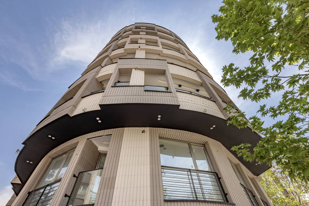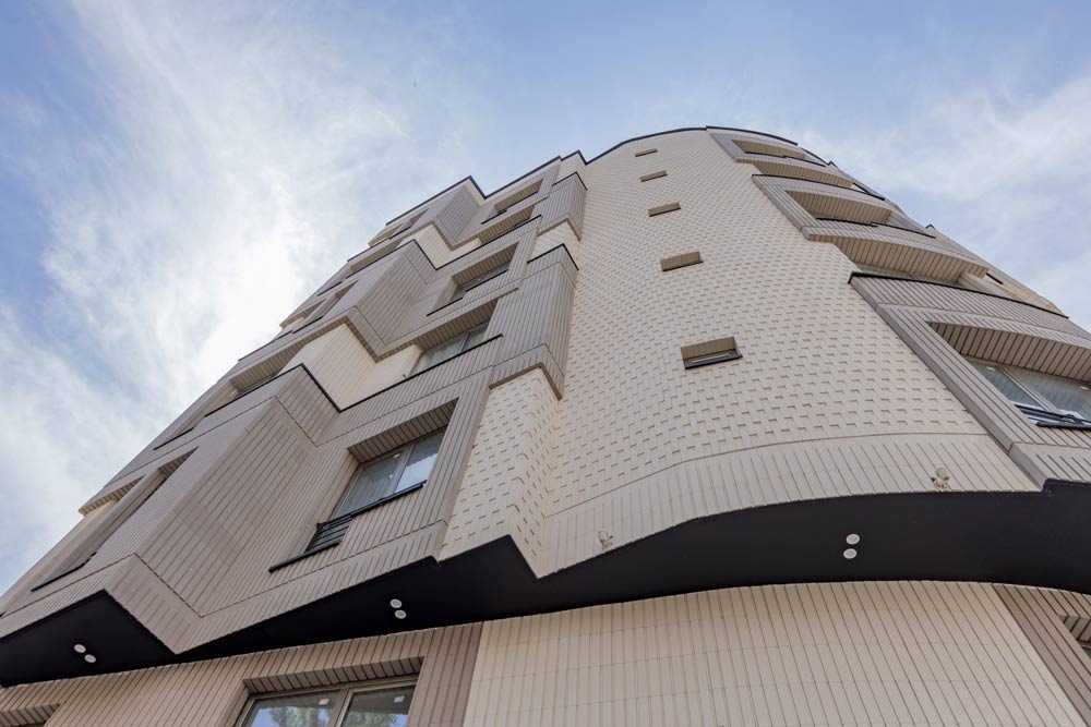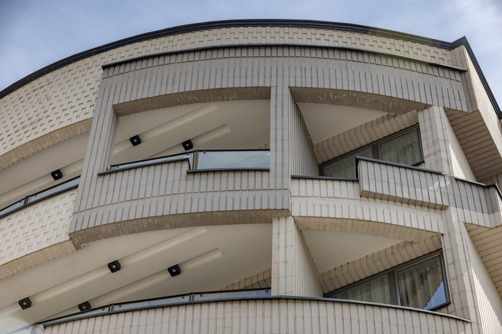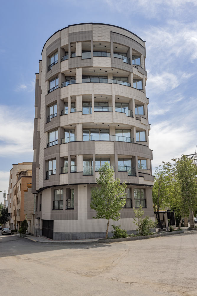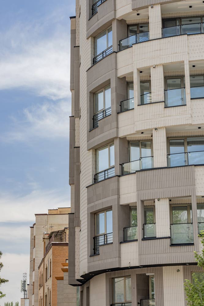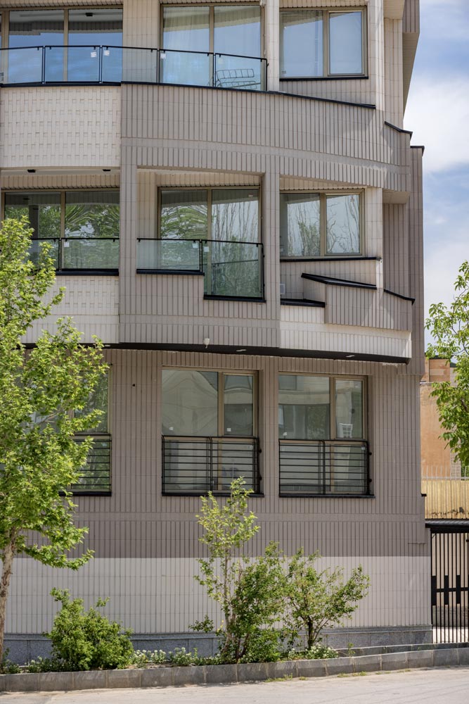 - ساختمان آجرنما طوسی و سفید با اجر مدرن آذرخش