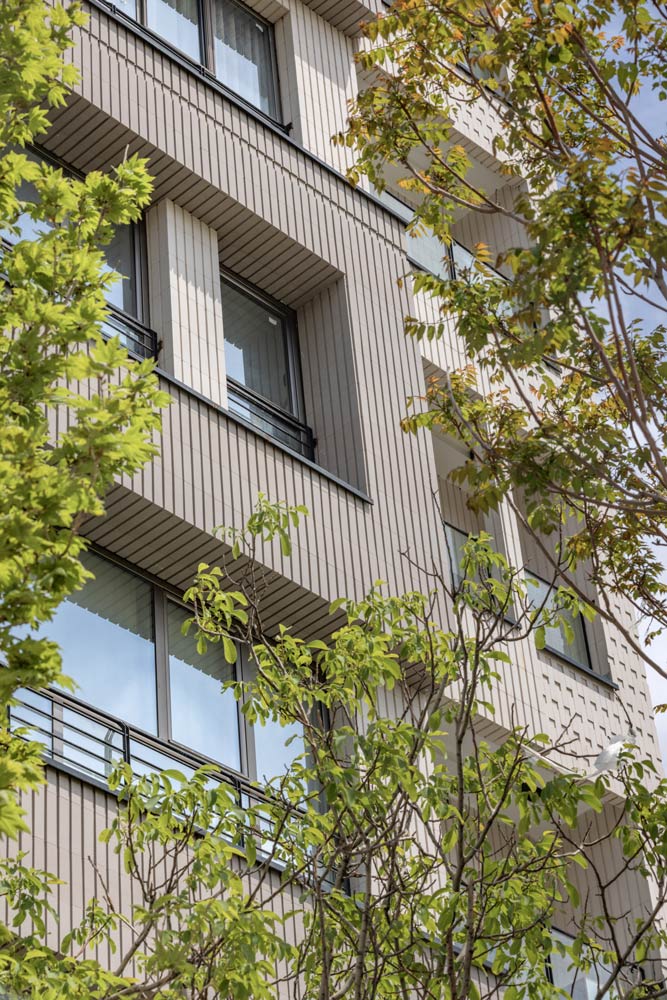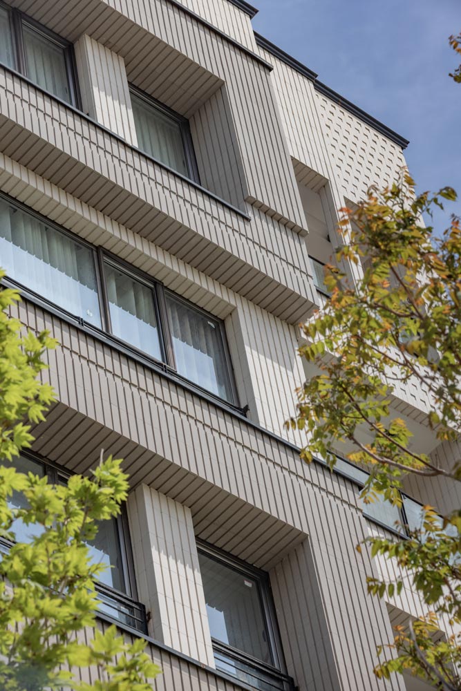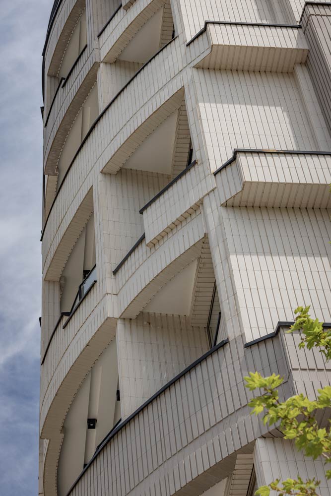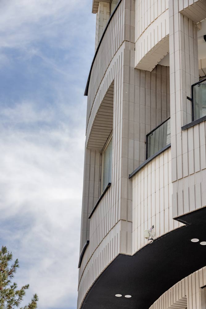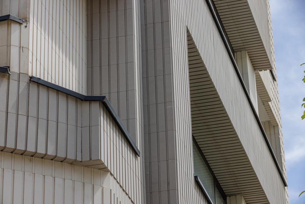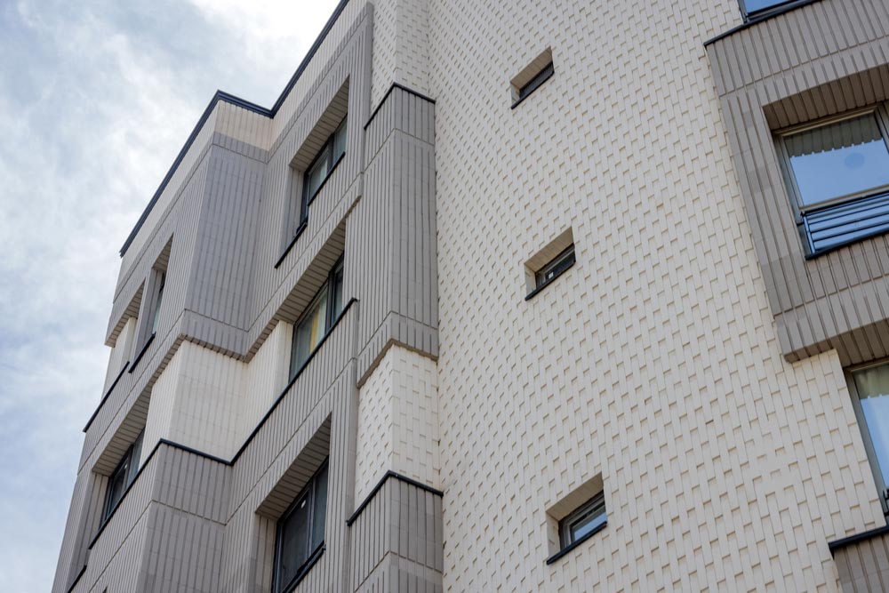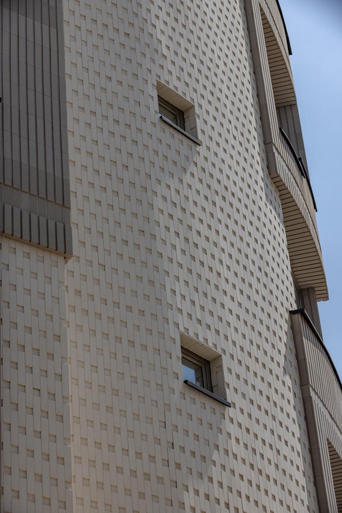 - ساختمان آجرنما طوسی و سفید با اجر مدرن آذرخش