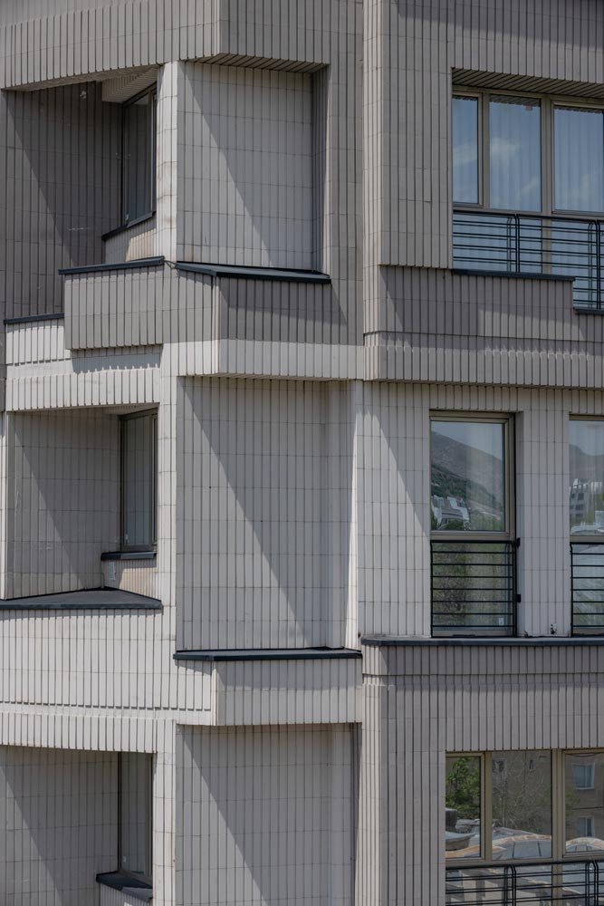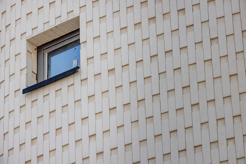 - ساختمان آجری با آجر مدرن سفید و طوسی آذرخش