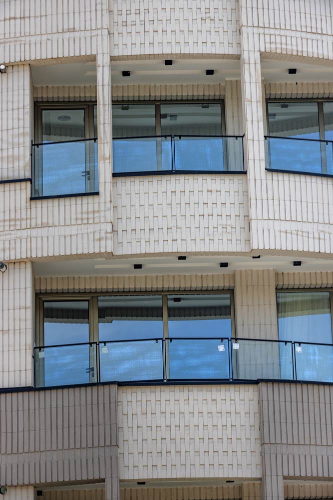 - ساختمان آجرنما سفید و طوسی